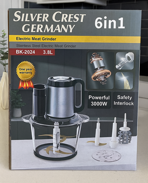 🍽️ قدرت، ظرافت و عملکرد در یک دستگاه! با خردکن 6 کاره SILVER CREST مدل BK-2024، آشپزخانهتان را به یک مرکز حرفهای آمادهسازی غذا تبدیل کنید. این دستگاه با توان فوقالعاده 3000 وات و موتور قدرتمند مس گیربکسی، آماده است تا سختترین مواد غذایی را در چند ثانیه خرد، چرخ یا آسیاب کند.