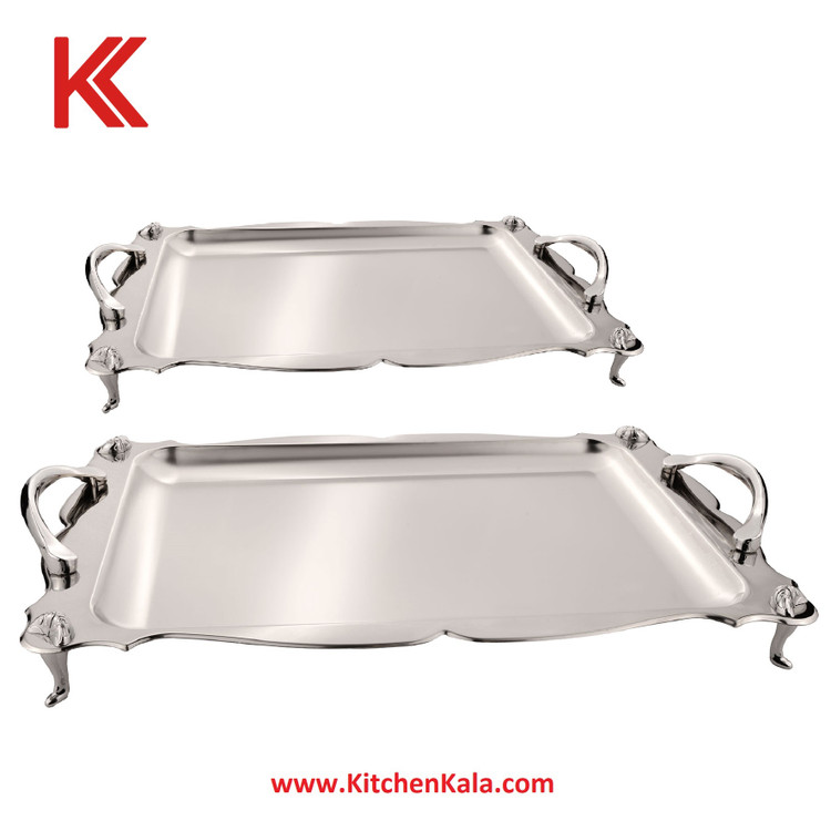 سینی پذیرایی استیل ضخیم پایه دار کد 50