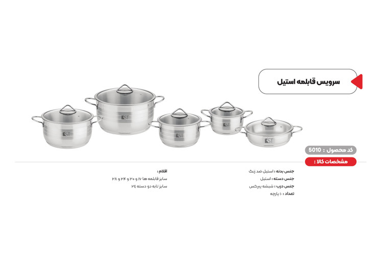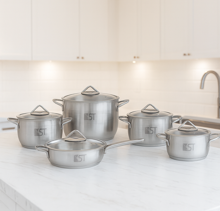 🍽️ سرویس قابلمه ۱۰ پارچه استیل KST – کد 5010 طراحی شده برای آشپزهای خوشسلیقهای که به کیفیت، دوام و زیبایی اهمیت میدهند.