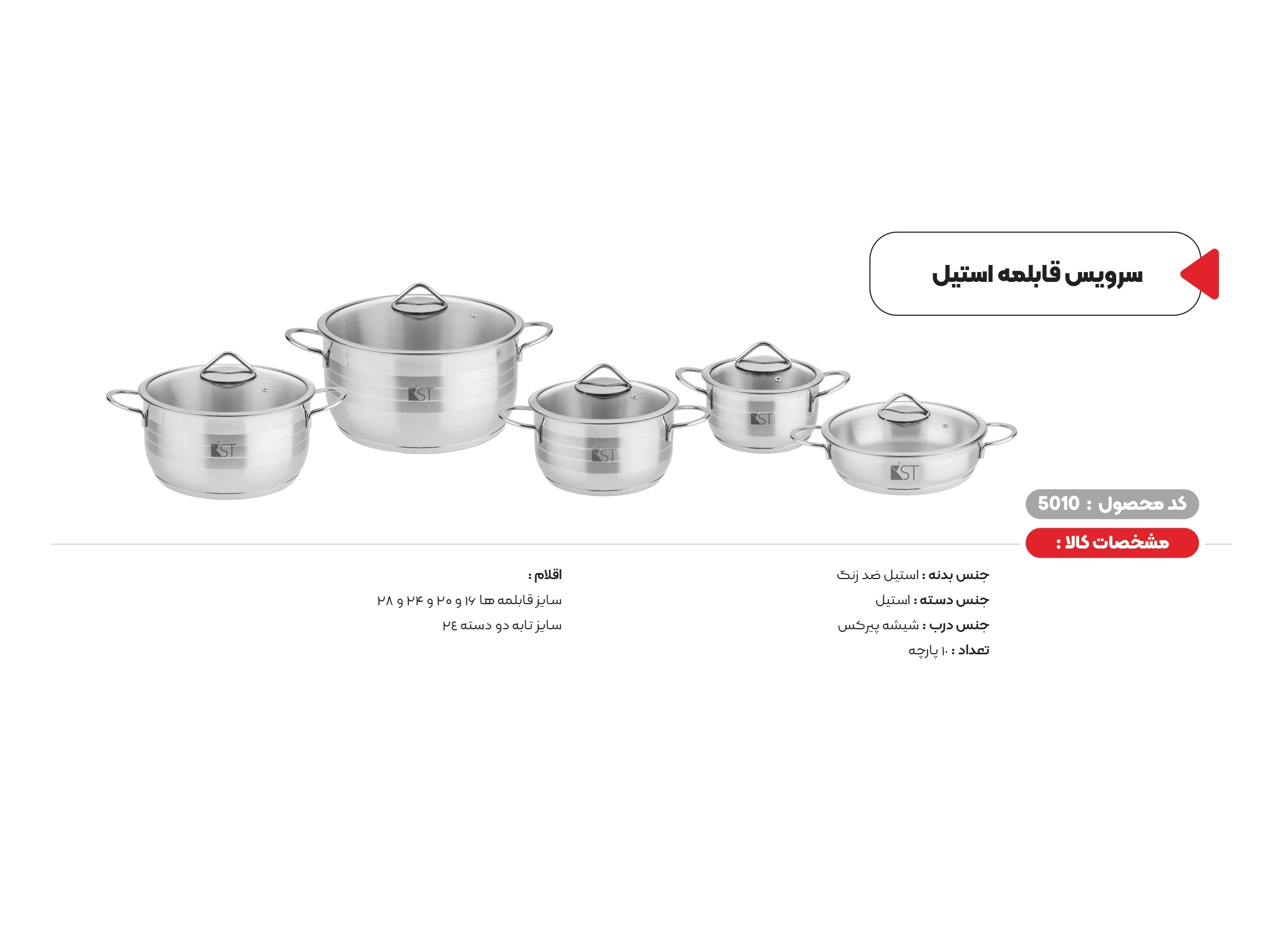 سرویس قابلمه 10 پارچه استیل KST کد 5010