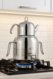 کتری با ظرفیت ۵.۵ لیتر، مناسب برای مهمانیها و جمعهای خانوادگی است و قوری ۱.۲ لیتری استیل، طعمی خالص و گرم از چای ایرانی را حفظ میکند. این ست، نهتنها یک ابزار کاربردی، بلکه یک اثر هنری روی اجاق شماست.